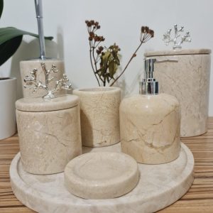 5 Pieces Pure White Luxury Marble Bathroom Set, Marble Bathroom Decor, Handmade Bathroom Set