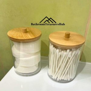 Storage Jar, Bamboo Lid Jar, Bathroom Storage Jar, Home Decor, Bathroom Storage, Object Holder