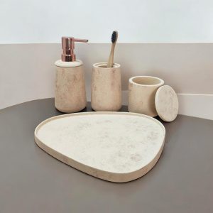 Bathroom set of three | Barhroom Decor Jars | Concrete trinket tray | Boho Style Home Decor