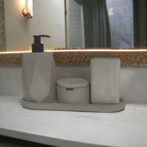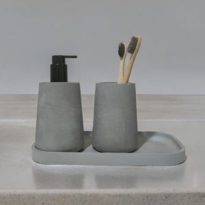 Concrete Bathroom Sink Accessories, Natural Bathroom Set with Tray, Cement Soap Dispenser Pump, Toothbrush Holder, Unique New Home Gift Idea