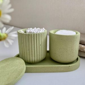 Concrete Bathroom Set Cotton Pads Cotton Swabs Storage Bathroom Accessories Bathroom Organizer Bathroom Lidded Jar Bathroom Decor Container