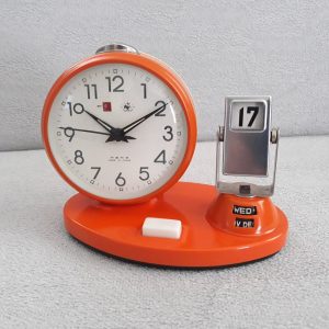 Vintage Clock, Alarm Clock, Calendar Clock, Desk Clock, Antique Clock, Orange Clock, Space Age Clock, Space Age, Clock