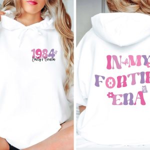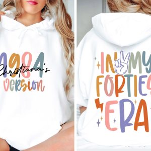 Custom In My Forties Era Hoodie with Your Name, Front-Back Print Sweatshirt, Hello My 40th Years Old T-Shirt For Women, Gift For Mom, D8395