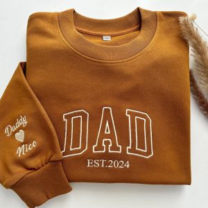 Custom Dad/Mom Embroidered Sweatshirt Name On Sleeve With Heart,Papa Hoodie,fête des pères,Fathers Day Gift,New Dad Gift