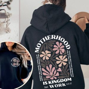 Christian Mom Hoodie Sweatshirt, Motherhood Is Kingdom Work, Bible Verse Gift Mom, Mother’s Day Gift, Mom Birthday, Floral Wife,New Mom Gift