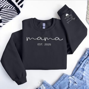 Custom Embroidered Mama Sweatshirt With Kids Names On Sleeve, Personalized Mom Embroidery Hoodie, Birthday Outfits, Baby Announcement Gifts