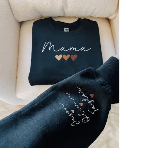 Personalized Mama Sweatshirt With Kids Names Sleeve, Mom Outfit, Custom Momma Hoodie,Gift For Mother, Names On Sleeve With Heart,Mommy Shirt