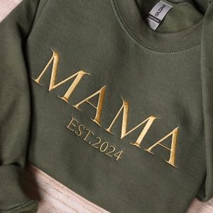 Personalized Mama Embroidered Sweatshirt, Custom Mom Embroidery Hoodie, New Mom Outfit, Pregnancy Reveal Clothing, Happy Mother’s Day Gifts