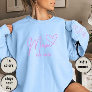 Personalized Mama Sweatshirt With Kids Names Sleeve, Est Date Mom Outfit, Custom Momma Hoodie, Gift For Mother, Names On Sleeve With Heart
