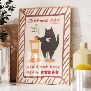 Kitchen Decor, Black Cat Print, Chef was cute Print, Kitchen Decor, Funny Cats, Cute Cooking Art, Kitchen Wall Art, Hand Drawn Cat, TR019