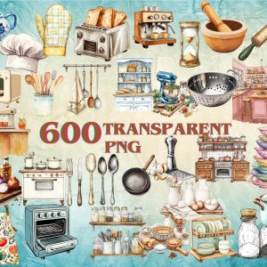 Kitchen watercolor Clipart, 600+ Cooking PNG, Rustic Cooking Clipart, Baking, Kitchen Utensils Clipart, Bakery Food Clipart, Commercial Use