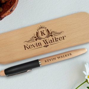 Personalized Wooden Pen Box, Custom Engraved Wooden Ballpoint Pen with case with name, Monogrammed Wood Pen, Office Gift, Gift for Boss