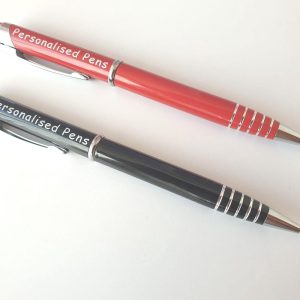 Printed Promotional New 2 in 1 Red & Black Ball Point Pen With Stylus | Glossy Metal Finish | Company Pens With Your Text/Logo Printed