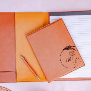 Custom Refillable Notebook, Monogram Padfolio, Personalized Portfolio, Office Business Gift, Birth Flower Engraved Leather Portfolio