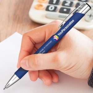 Full Colour Printed Logo Pen with personalised text Custom Promotion Pen With a Choice of Soft-Touch Rubberised Coating Colour