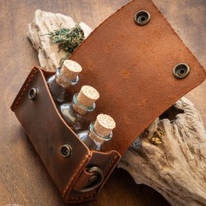Handmade Leather Spice Bag Rustic Travel Organizer with Glass Jars Vintage Camping and Kitchen Accessory Camping Gear