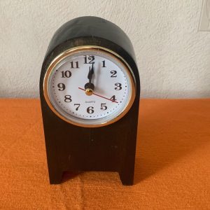 Handmade reclaimed wood art deco style quartz bed side/ shelf clock. Wooden desk clock