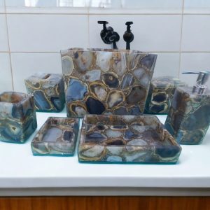 Modern Bathroom Vanity Decor Items, Bath Accessories Set of 7 made of natural brown agate, Stylish Bathroom Decor