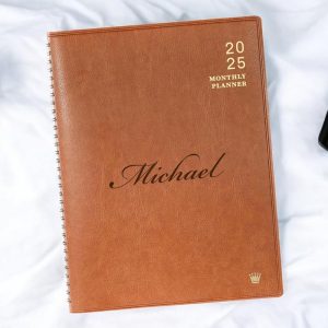 Personalized 2025 PLANNER CALENDAR Leather Organizer Notepad Notebook Custom Engraved Gift for Dad Her Him Men Women Grandpa Mom Teacher