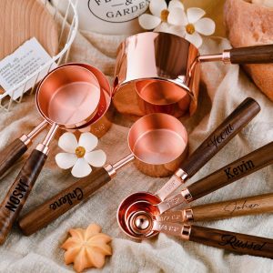 Personalized Engraved Measuring Cups Measuring Spoons, Personalized Engraved Measuring Cups Spoons Set with Wooden Handles,Kitchen Utensil