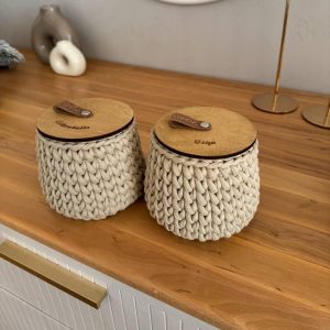 Qtip and cotton ball holder, bathroom storage, boho bathroom container, cotton bud storage, baskets with lid, bathroom accessories