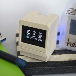 Retro Macintosh Mini Computer Desk Clock – Vintage-Inspired Smart Weather & Quote Display – Nostalgic Apple Tech Decor
